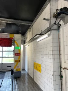 L’intérieur de la buanderie a également été rénové. Les murs sont revêtus de panneaux PVC Cleanpanel pour une finition esthétique et facile d’entretien. Deux portes Cleandoors ont été installées dans le mur, dissimulant le compartiment technique. Ces portes sont en PVC résistant et dotées de cadres en acier inoxydable.