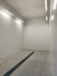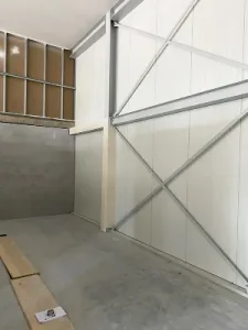 Les projets de lavage auto exigent souvent la créativité de notre équipe d’installation, car l’espace autour des ponts est souvent limité. Le problème de ce projet résidait dans les portes basculantes, qui ne pouvaient plus s’ouvrir à cause de l’encombrement des panneaux en plastique. Par conséquent, les panneaux ont été placés entre la structure en acier des portes, laissant suffisamment d’espace pour la porte et son système de ressort. Cela a permis une ouverture en douceur de la porte tout en obtenant un mur impeccable.