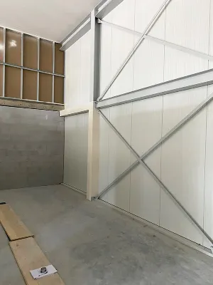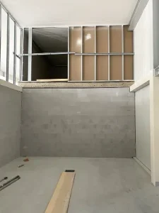 Pour l’installation des panneaux muraux, la structure existante a d’abord été remplie de tuyaux en plastique. Les élégants murs en plastique ont ensuite été posés au sol et fixés à la structure sous-jacente.